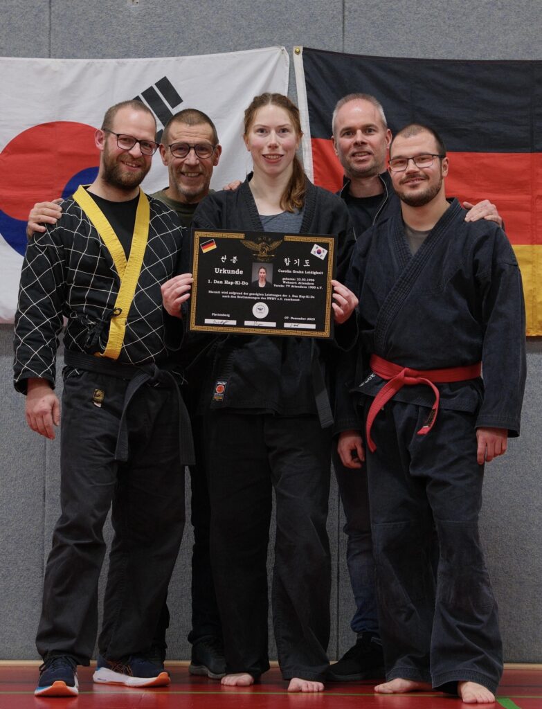 Am Sonntag, dem 07. Dezember 2025 trafen sich die Hapkido Dananwärter des Nordrheinwestfälischen Hapkido Verbandes NWHV e.V. zur alljährlichen Danprüfung in Plettenberg, die immer den Höhepunkt des sportlichen Jahres darstellt. Unter ihnen stellte sich Carolin Grahn Leidigkeit aus Attendorn der Prüfung.